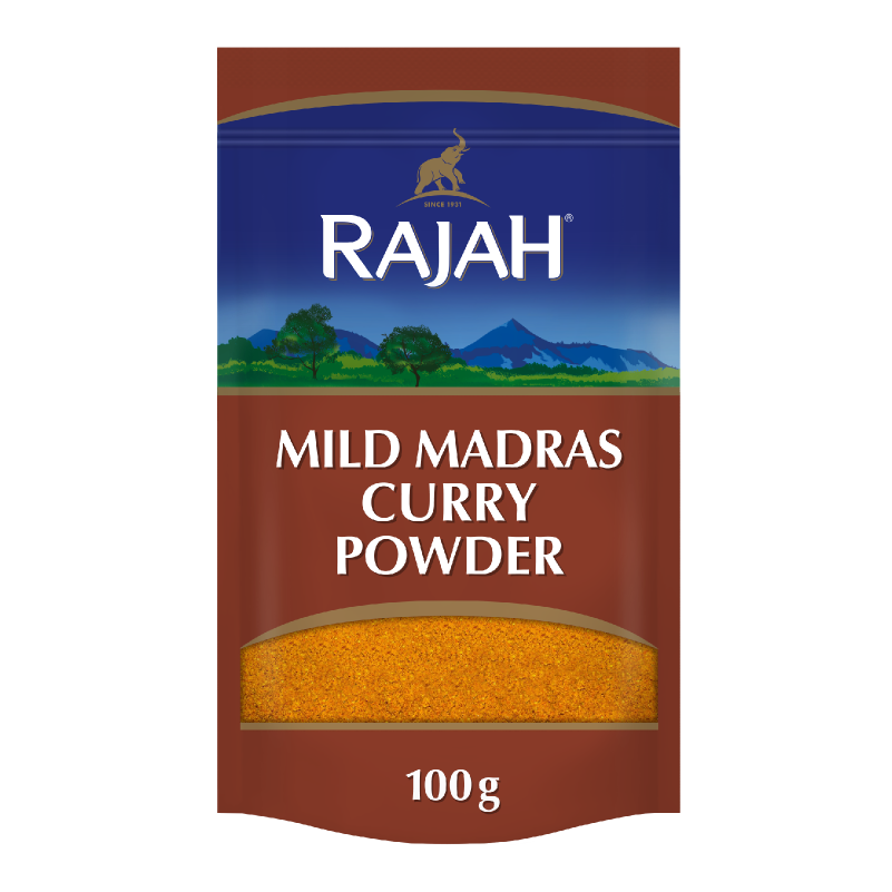 Rajah Mild Madras Curry Powder is an aromatic blend of spices that provides mild heat and a taste typical of the Madras region.